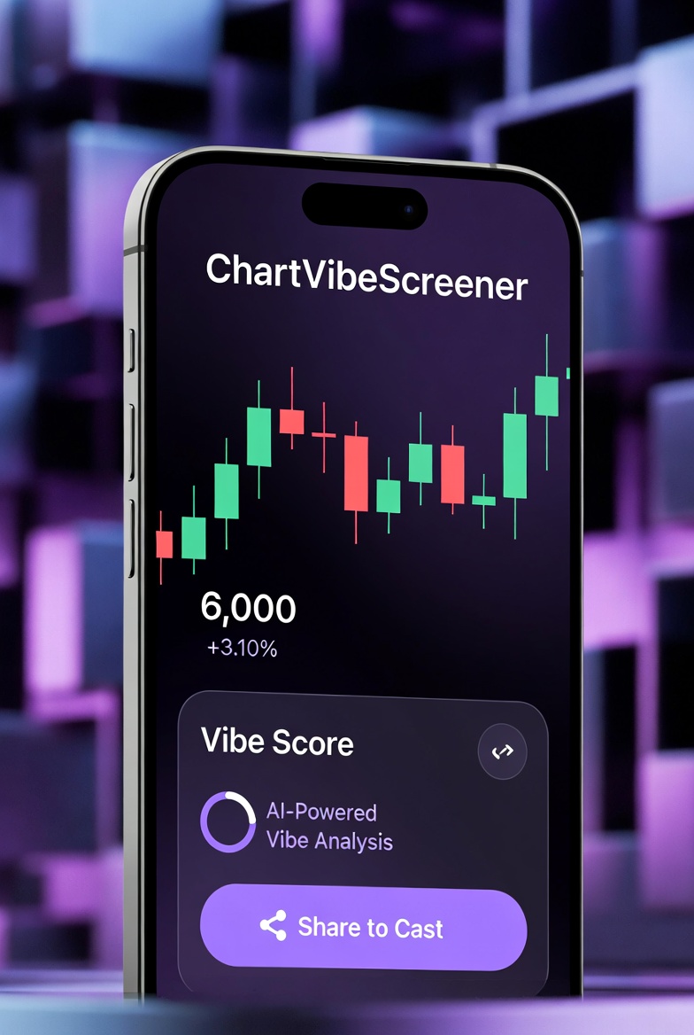 Instant token chart analysis + AI vibe scores on Base Paste any CA → get live DexScreener chart, key metrics, and a 0-100 Vibe Score (bullish/bearish/rug alert). Share custom pump reports straight to your cast. Built for degens spotting the next moon.